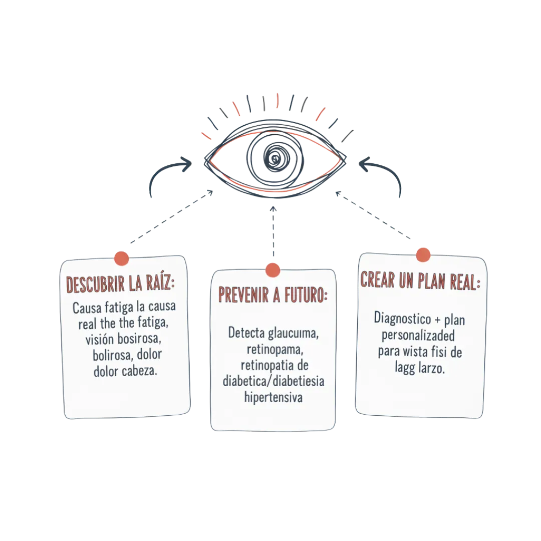DESCUBRIR LA RAÍZ: Identificamos la causa real de la fatiga visual, visión borrosa y dolores de cabeza, que a menudo no se soluciona solo con lentes.