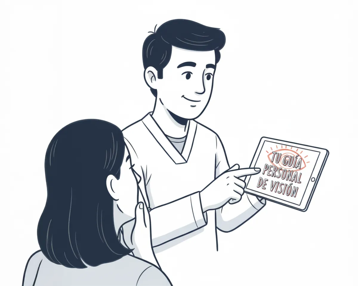 3.- Recibe Tu Guía Personal de Visión: Saldrás de la consulta no solo con respuestas, sino con un reporte personalizado que detalla los hallazgos y tu plan de acción para una salud visual óptima.